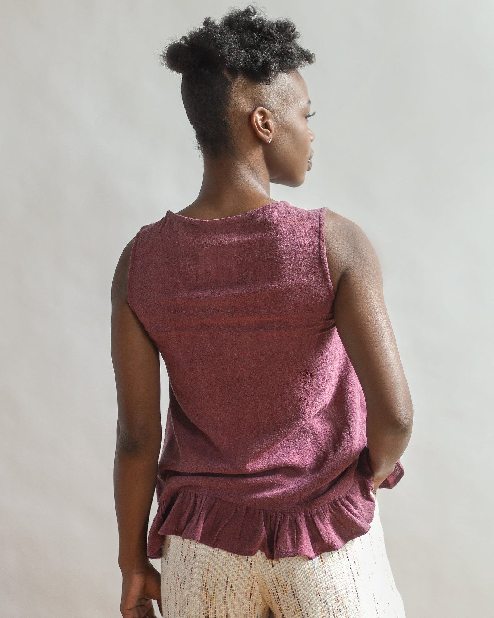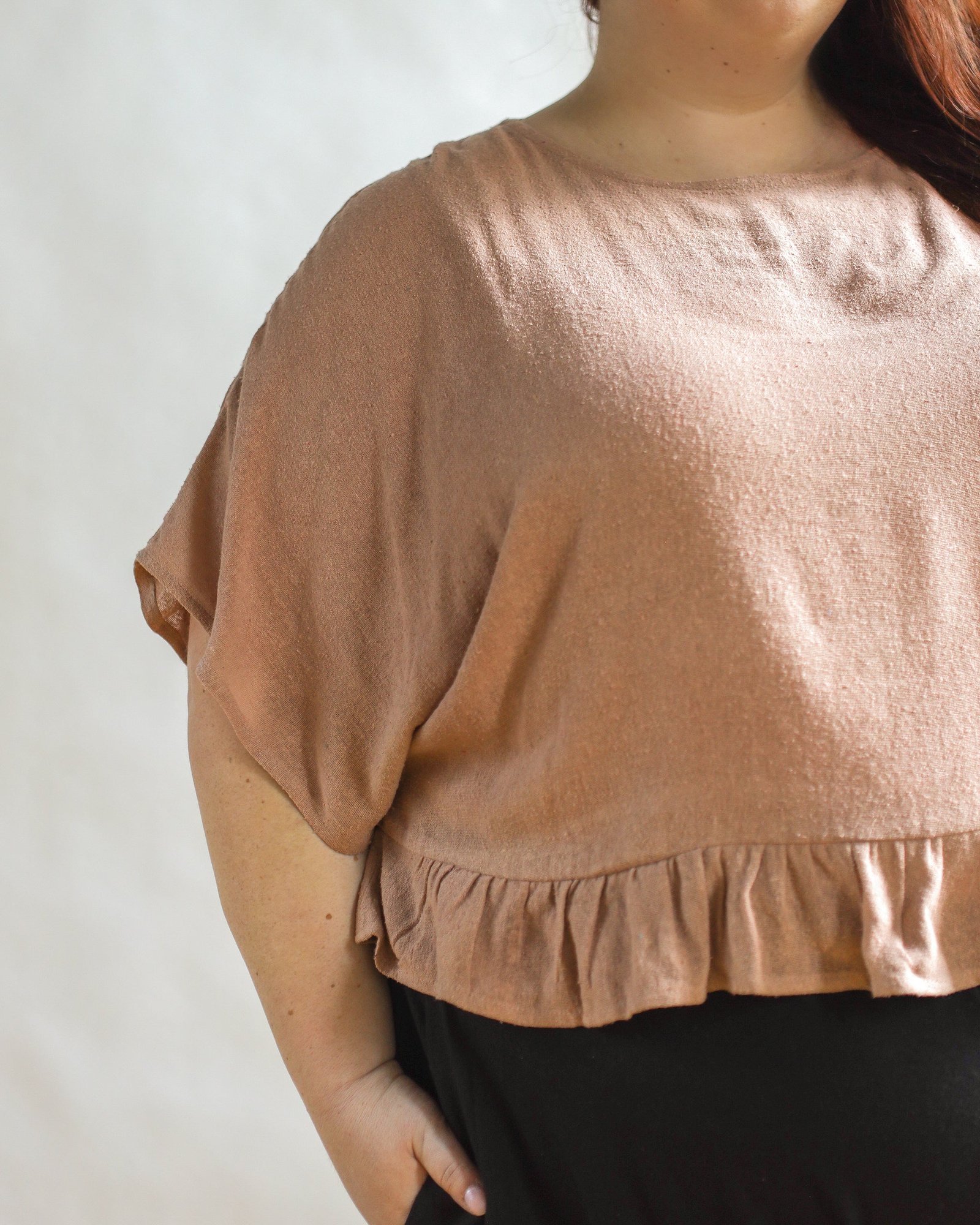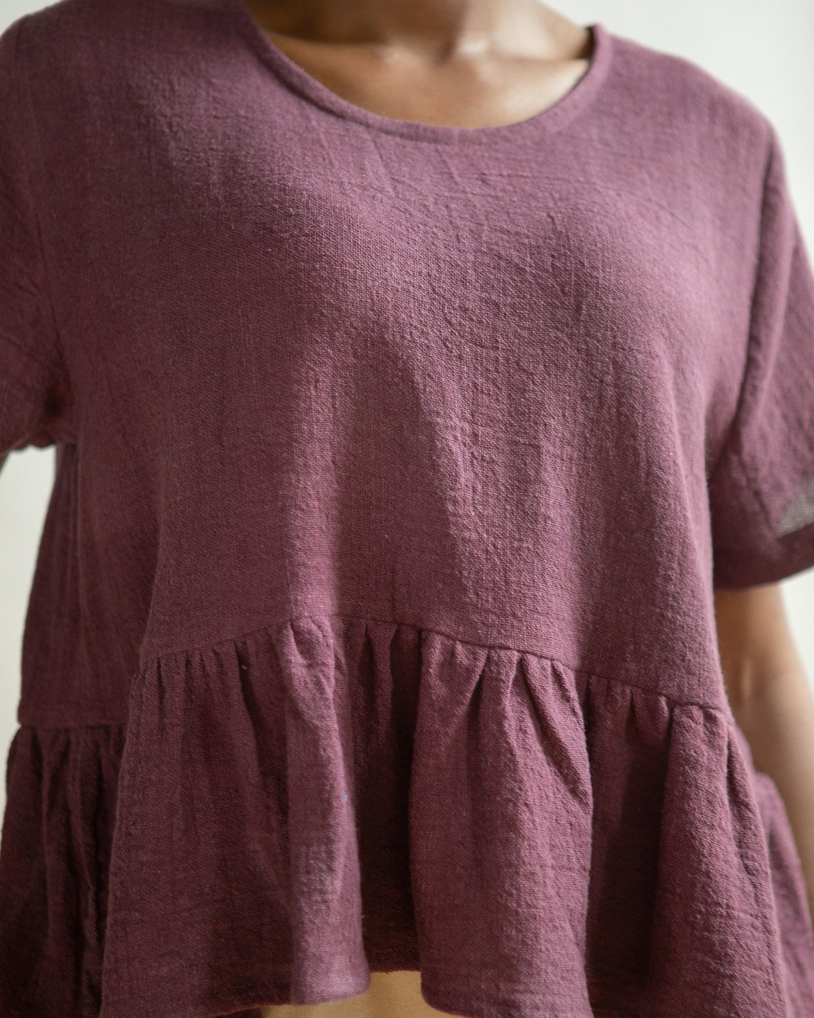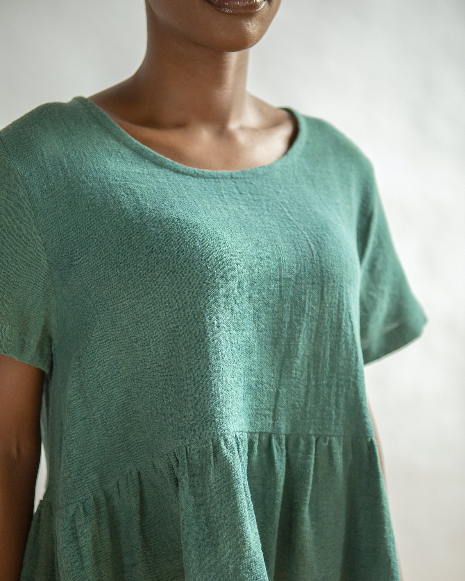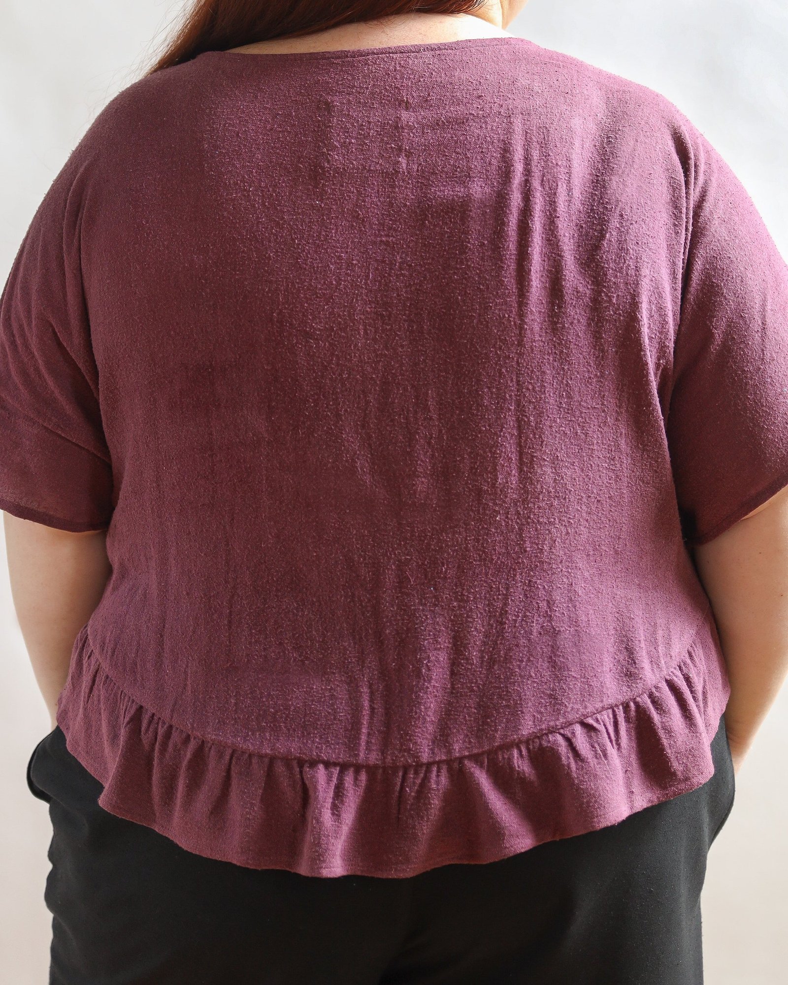 To extend the life of the fibers and deep colors, hand wash in pH neutral soap (think any name brand “free and clear”, mild colorless detergent) and hang to dry. Naturally dyed clothing can also be machine washed in cool water and a gentle detergent. Tumble dry on low. *Avoid bleach, baking soda, and vinegar when washing*