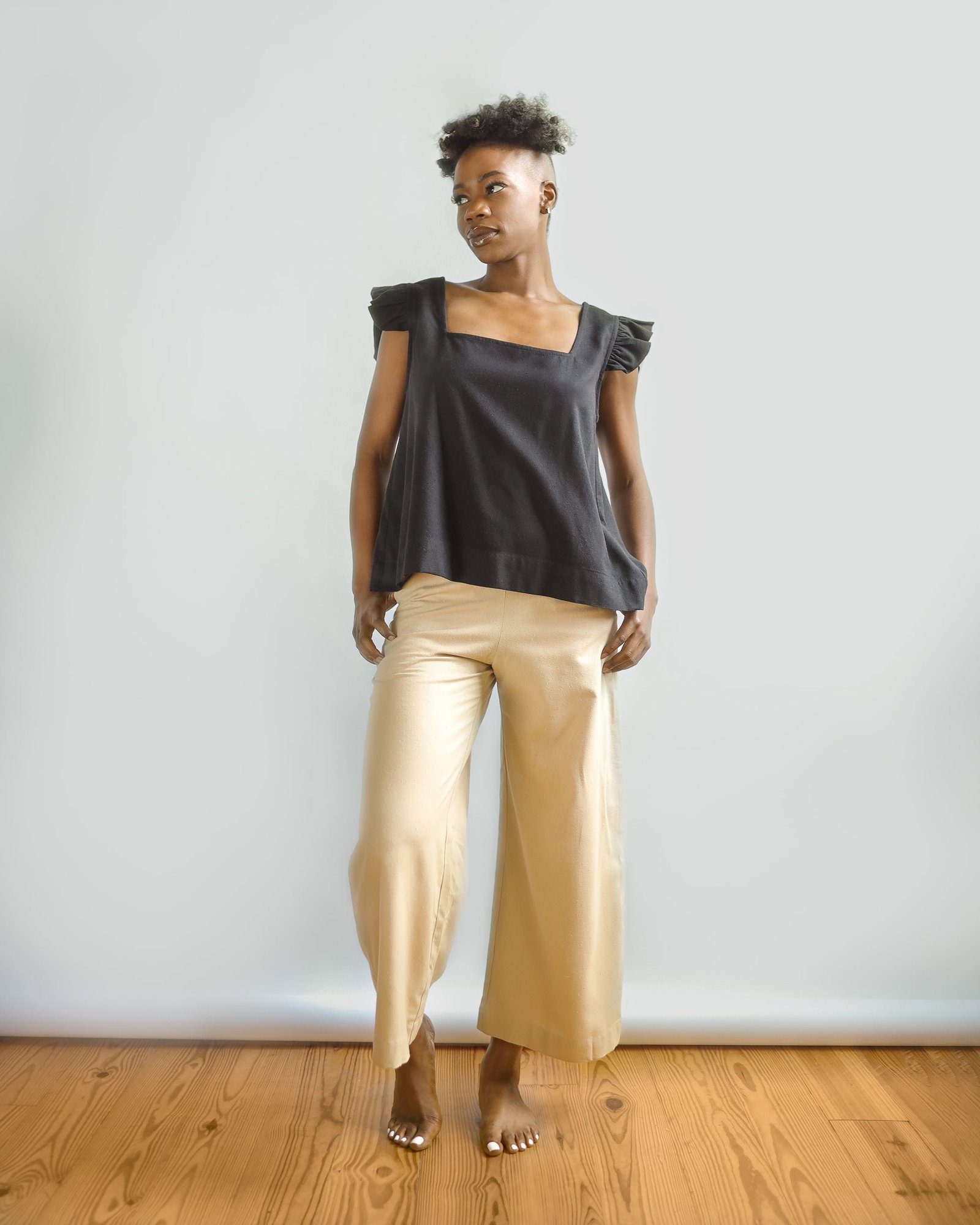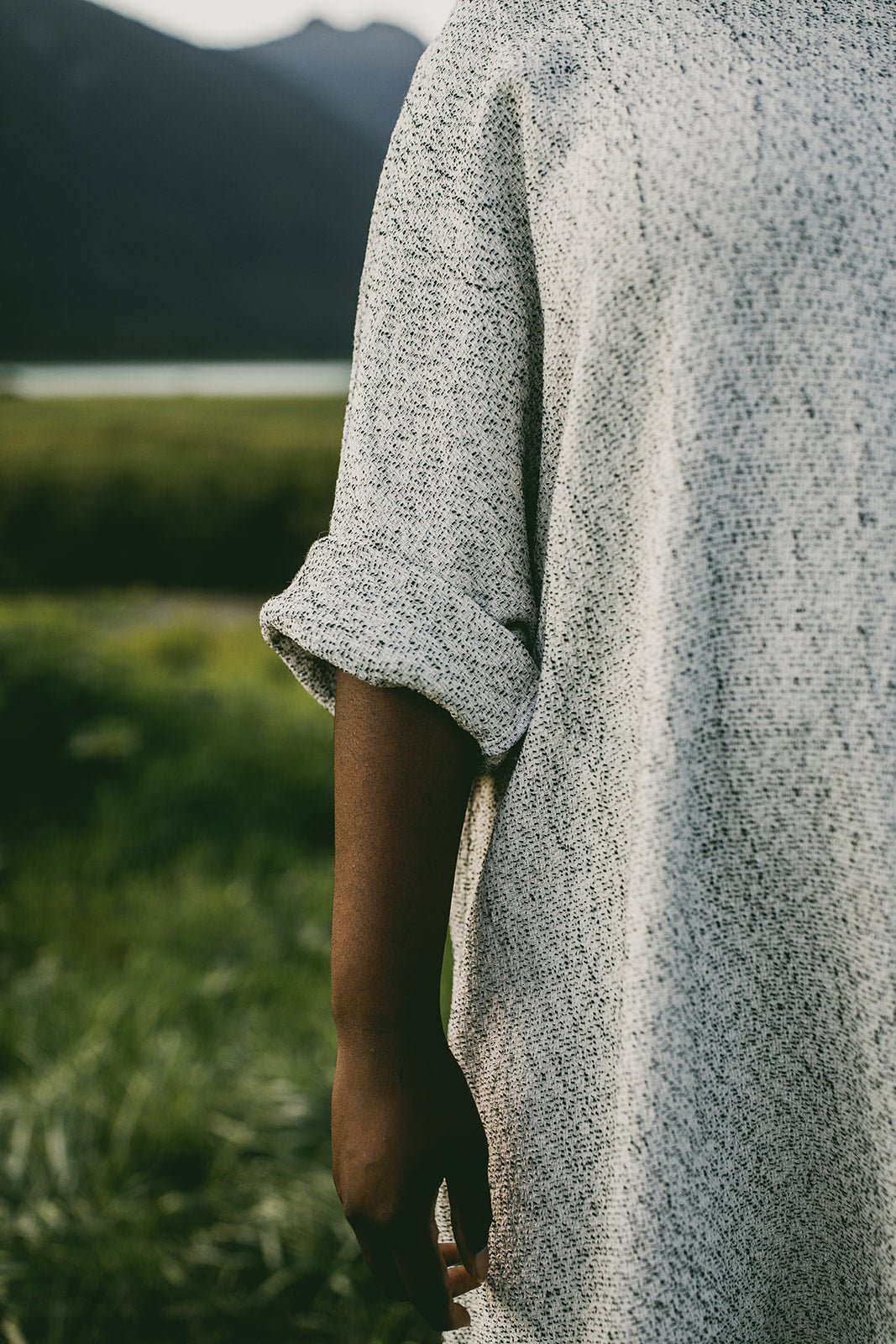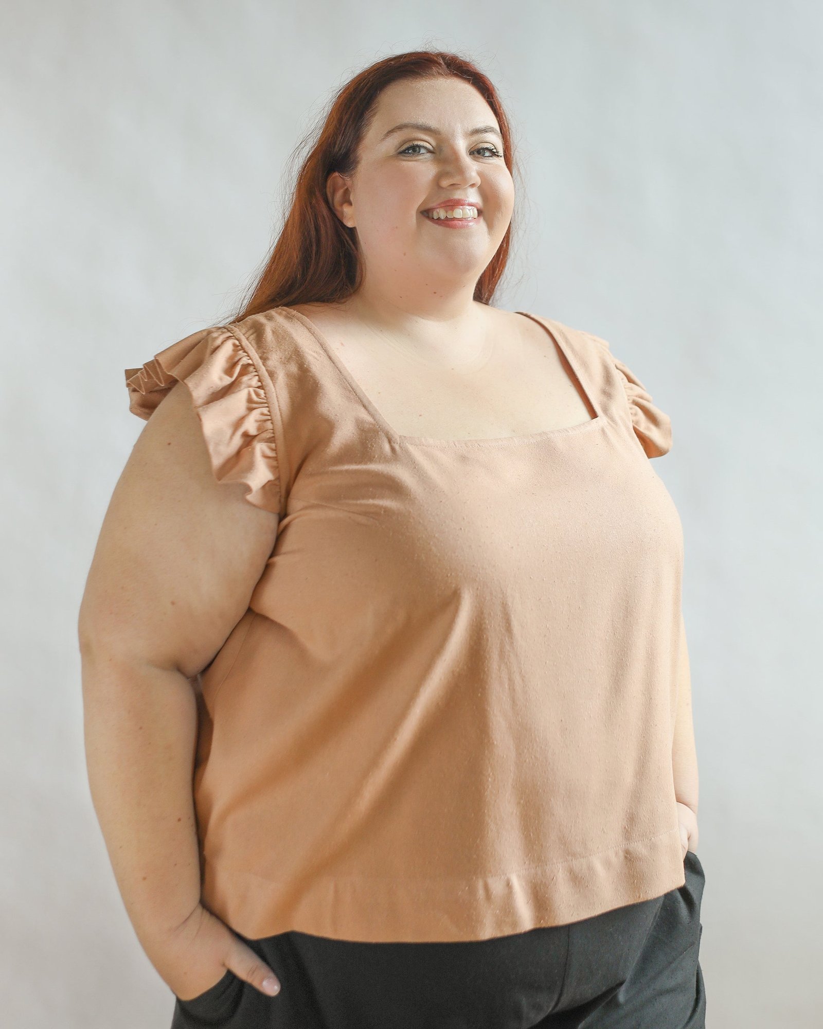 Refer to our Blank Canvas Top in Raw Silk for fit and sizing comparisons on different models.