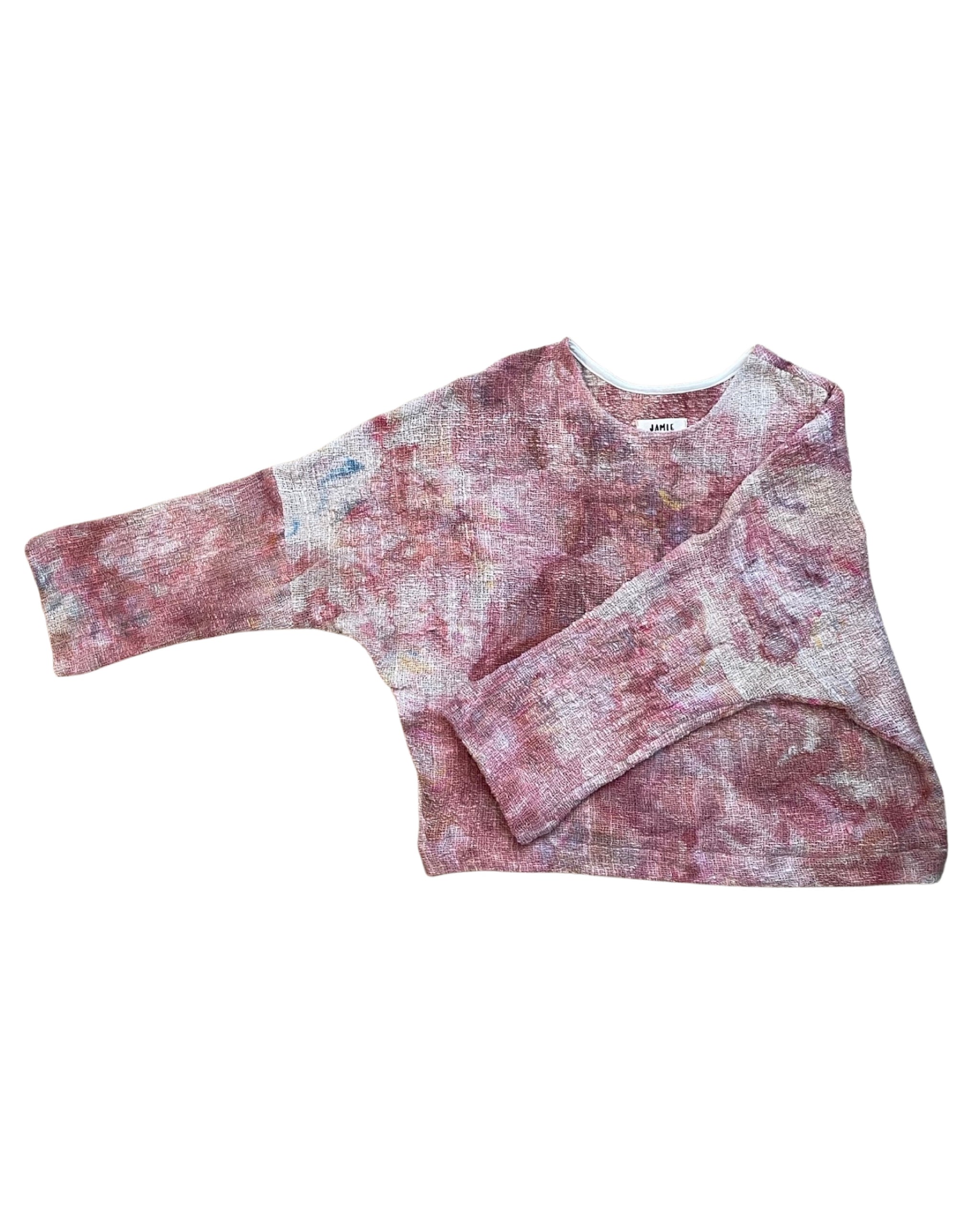 To extend the life of the fibers and deep colors, hand wash in pH neutral soap (think any name brand “free and clear”, mild colorless detergent) and hang to dry. Naturally dyed clothing can also be machine washed in cool water and a gentle detergent. Tumble dry on low. *Avoid bleach, baking soda, and vinegar when washing*
