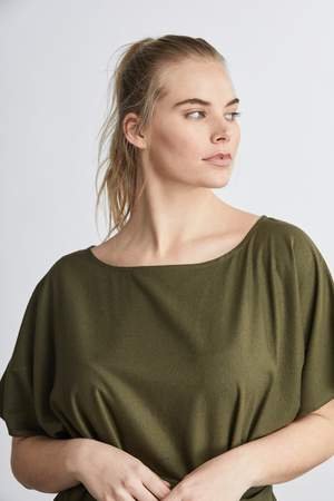 - Abbie (in Olive) is wearing a size Large. She is 6’0” Tall with a 34”B/C Bust, 31” Waist, and 42.5” Hip.