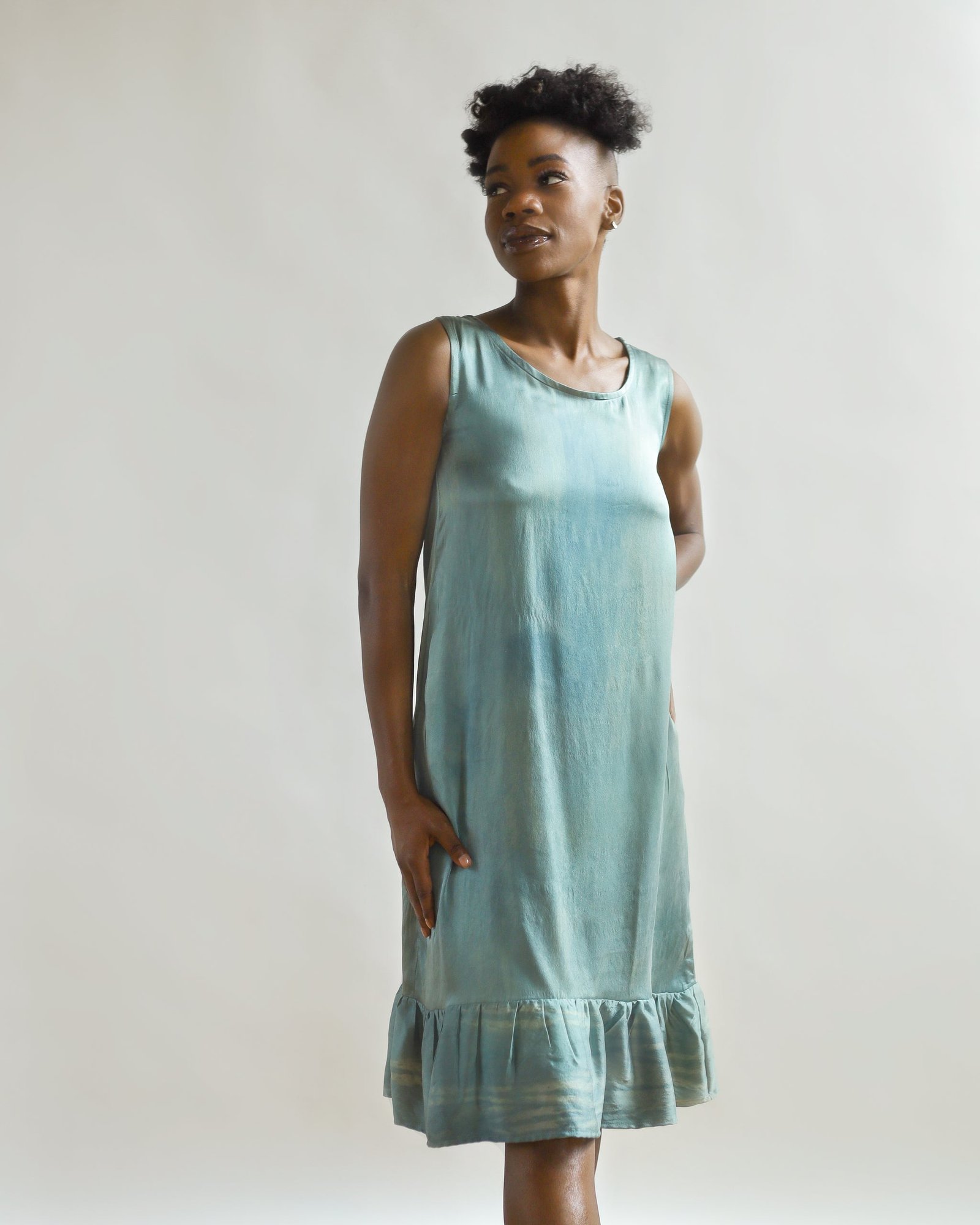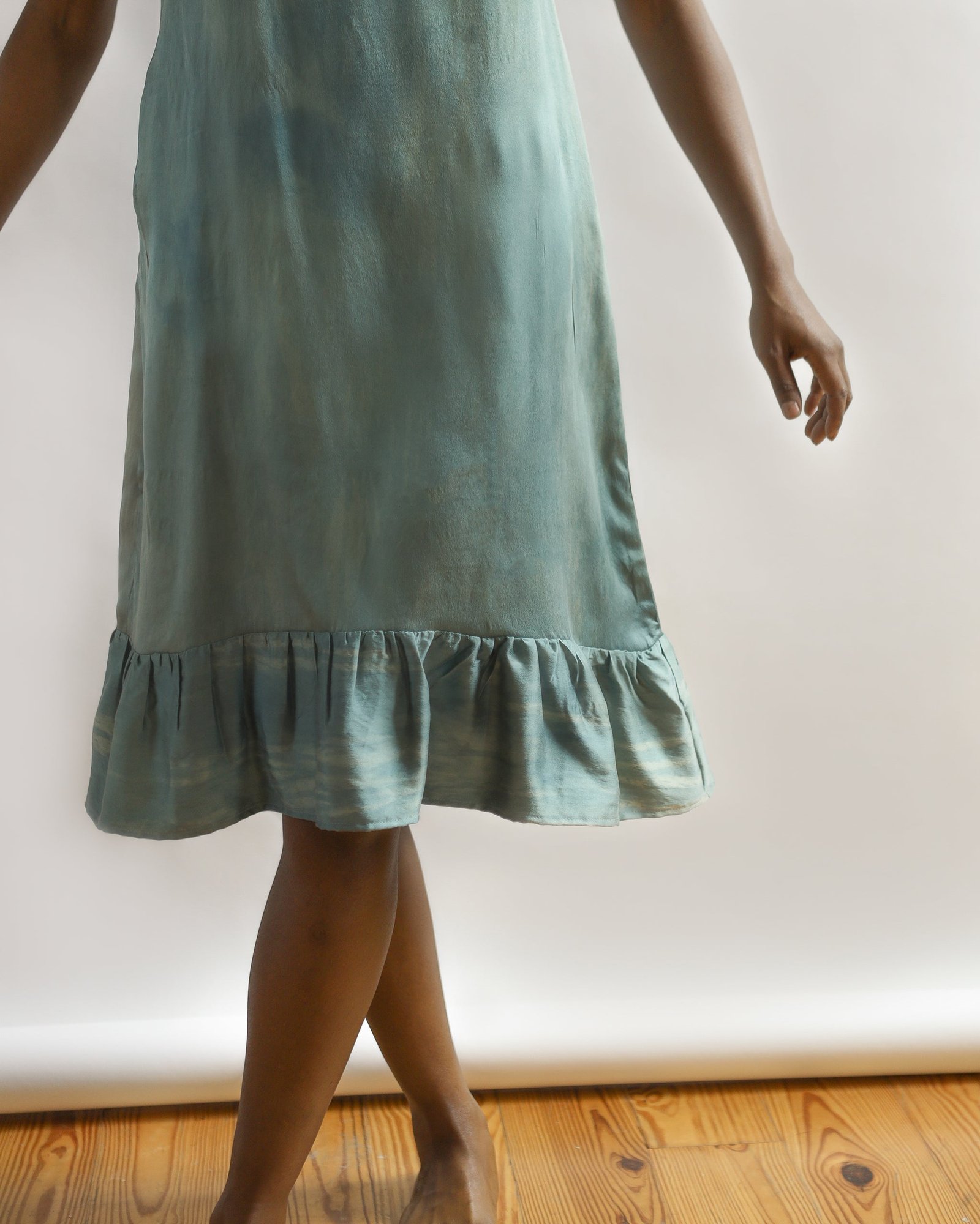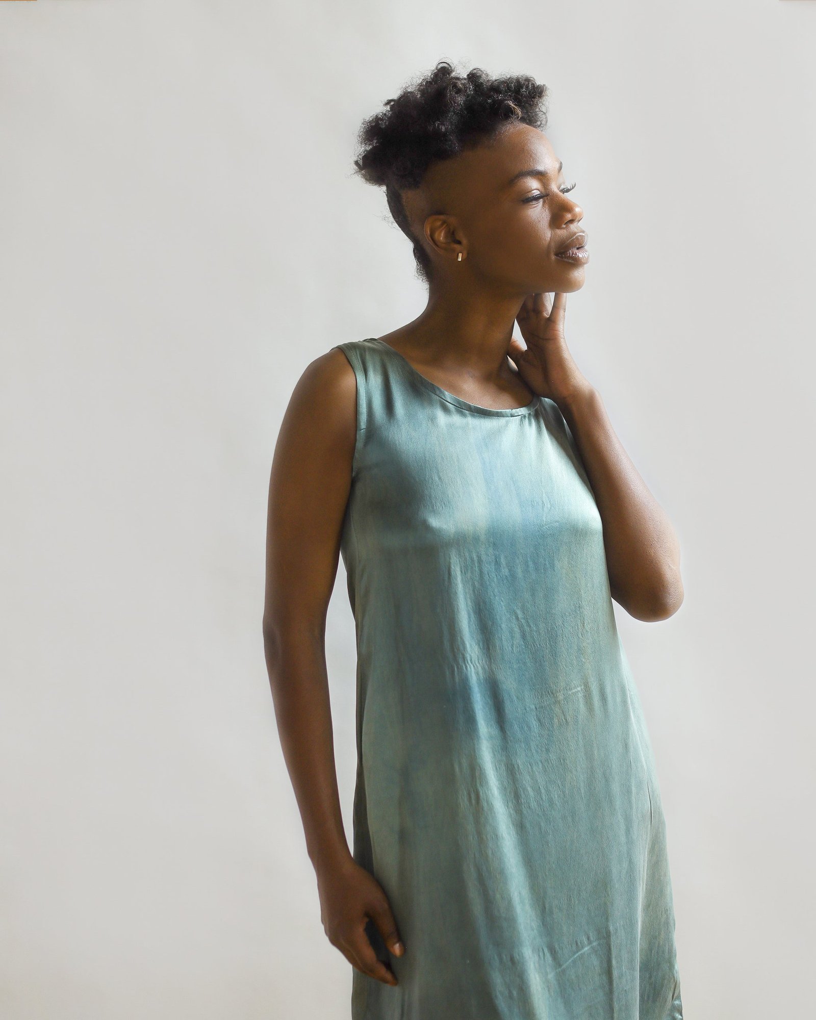 Do not dry or store clothing in direct sunlight as this may create fading. Avoid wearing deodorant with baking soda while wearing naturally dyed clothing. Avoid contact with iron rust and strong acids like lemon juice, wine, or vinegar, which can shift or bleach natural color. If the garment comes in contact with a strong acid or alkaline substance, immediately soak the garment in cool water and pH neutral soap to neutralize the reaction. Hand wash and line dry.