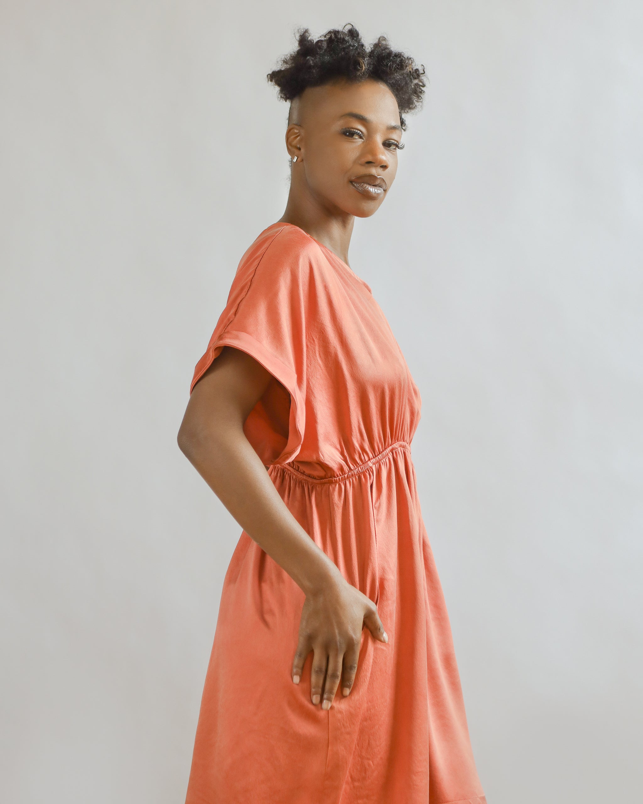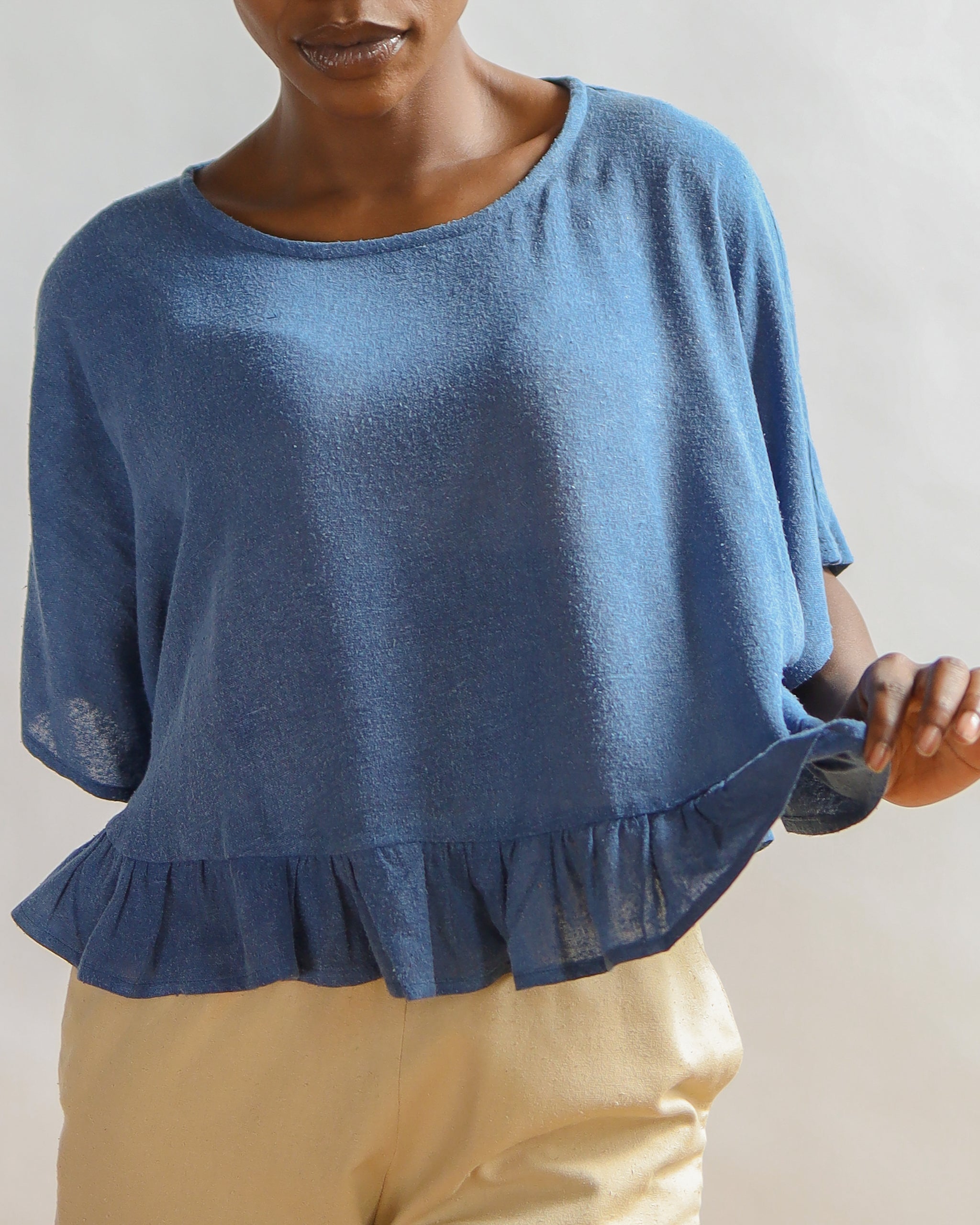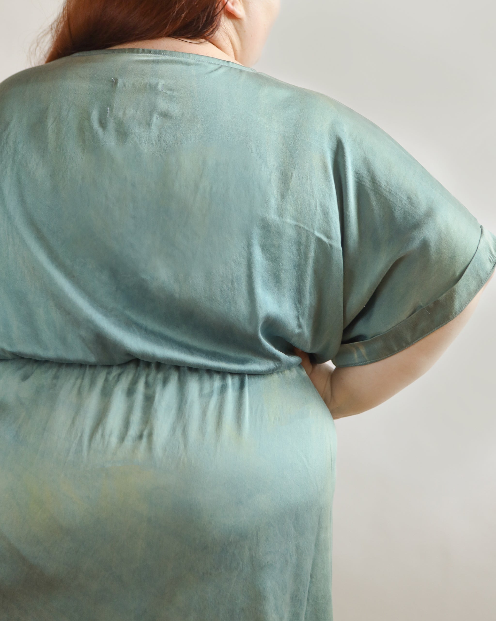 To extend the life of the fibers and deep colors, hand wash in pH neutral soap (think any name brand “free and clear”, mild colorless detergent) and hang to dry. Naturally dyed clothing can also be machine washed in cool water and a gentle detergent. Tumble dry on low. *Avoid bleach, baking soda, and vinegar when washing*