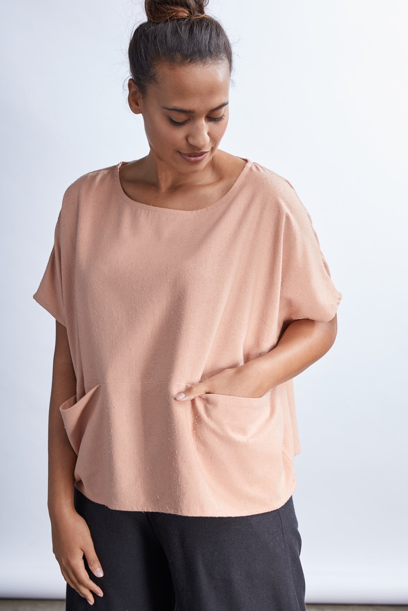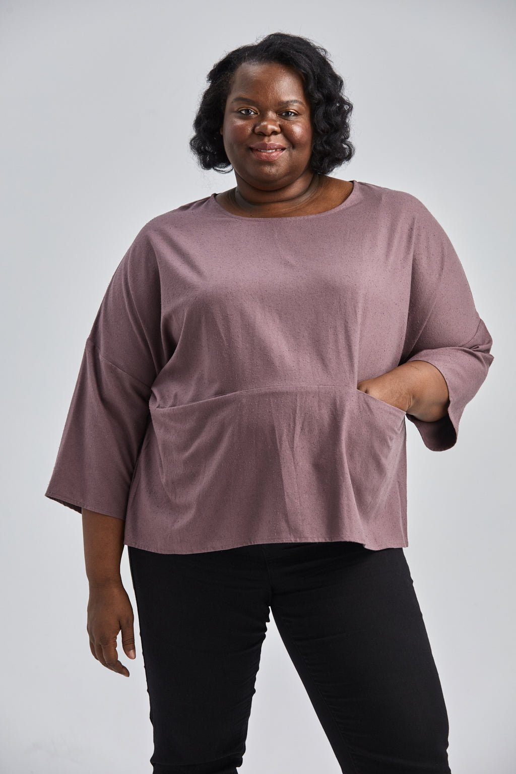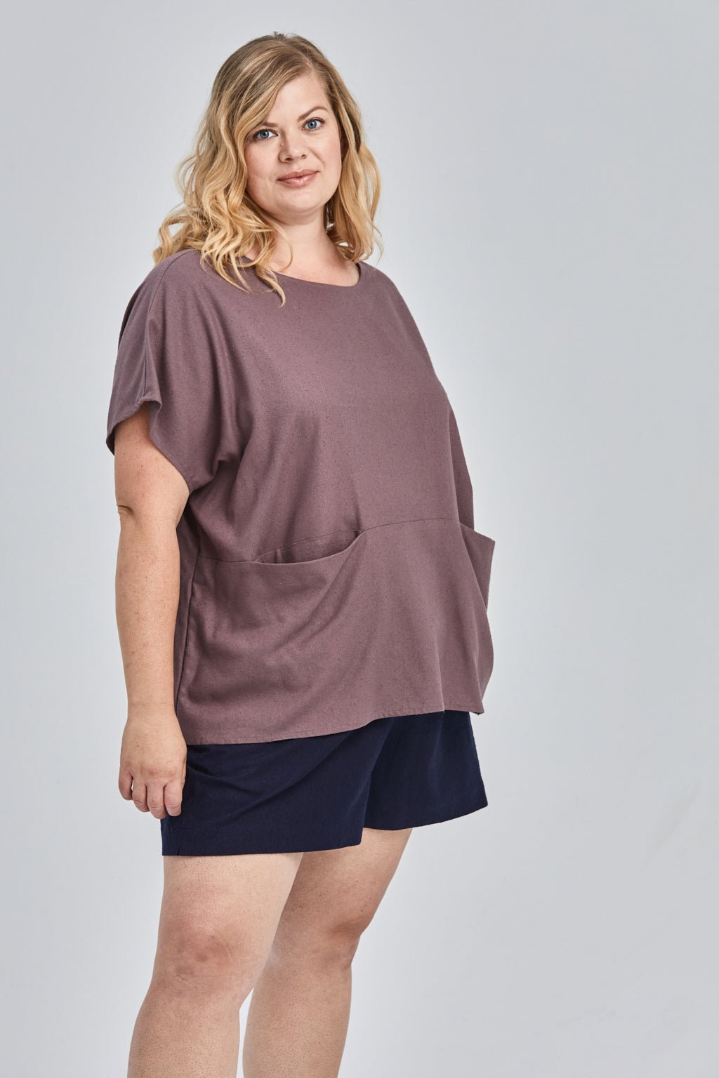 Jessica (in Umber) is wearing a size 2XL, Regular Length. She is 5' 10” Tall with a 48” Bust, 41” Waist, and 50” Hip. Her Arm Length measures 24” and Bicep 17”.