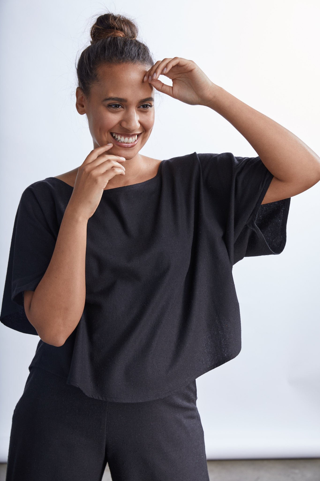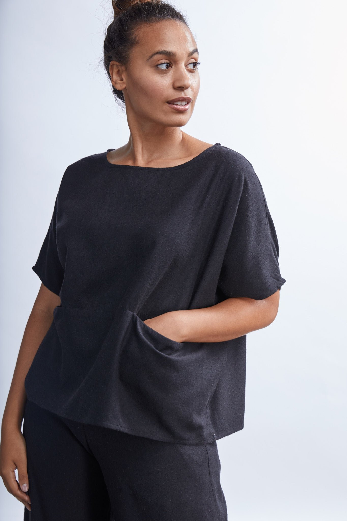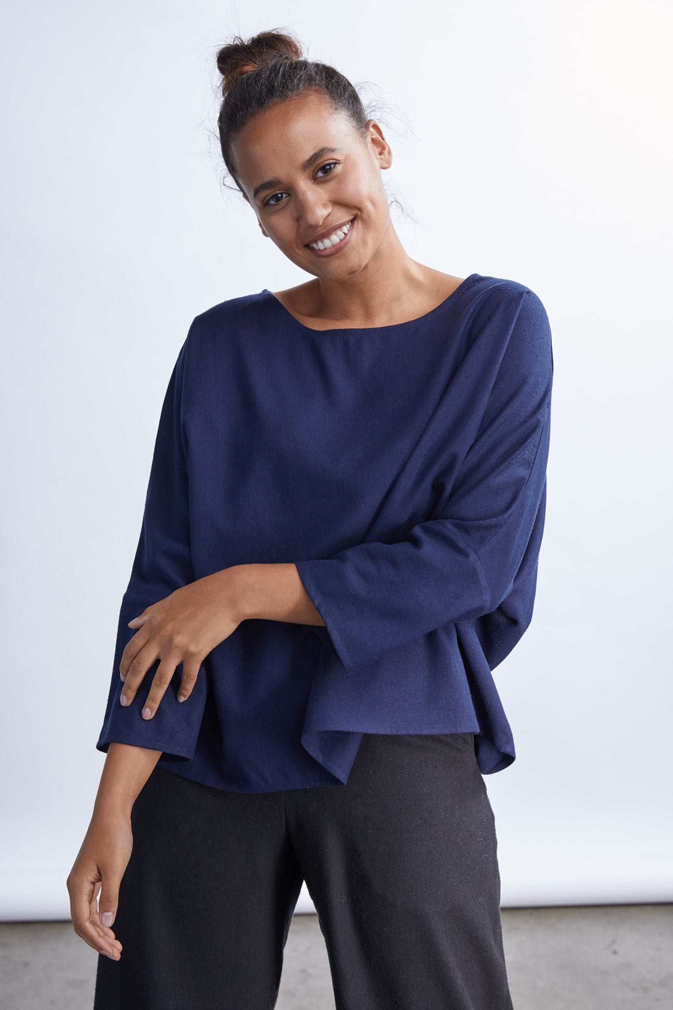 Jessica (in Umber) is wearing a size 2XL, Regular Length. She is 5' 10” Tall with a 48” Bust, 41” Waist, and 50” Hip. Her Arm Length measures 24” and Bicep 17”.