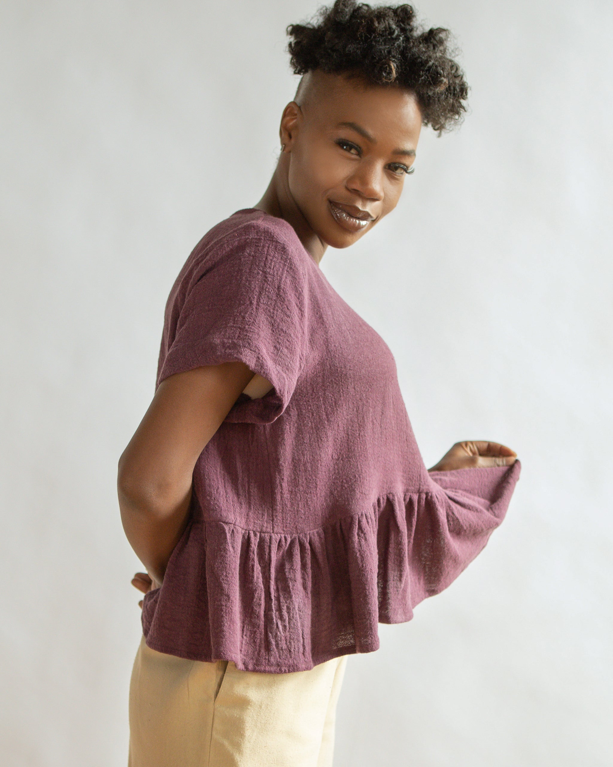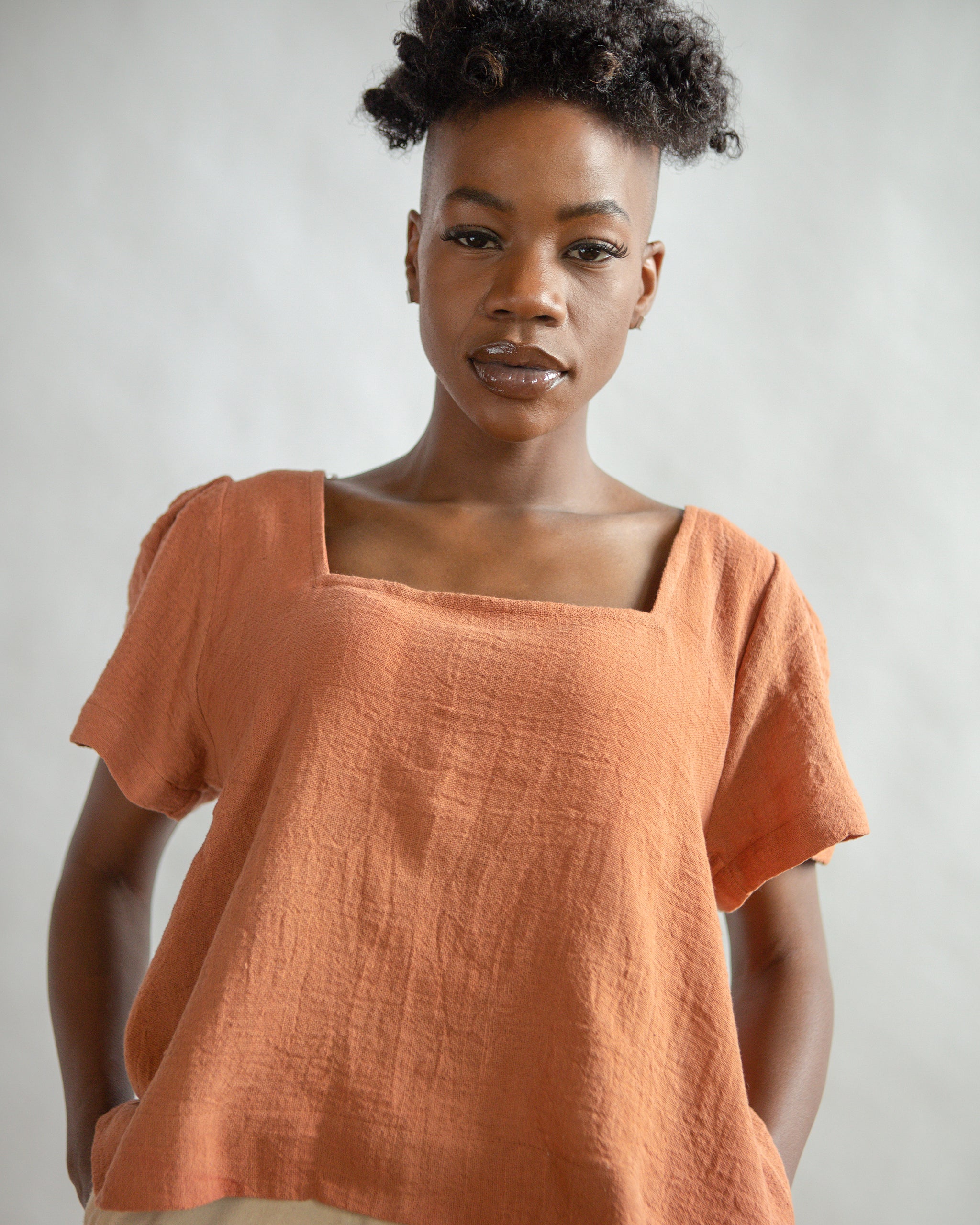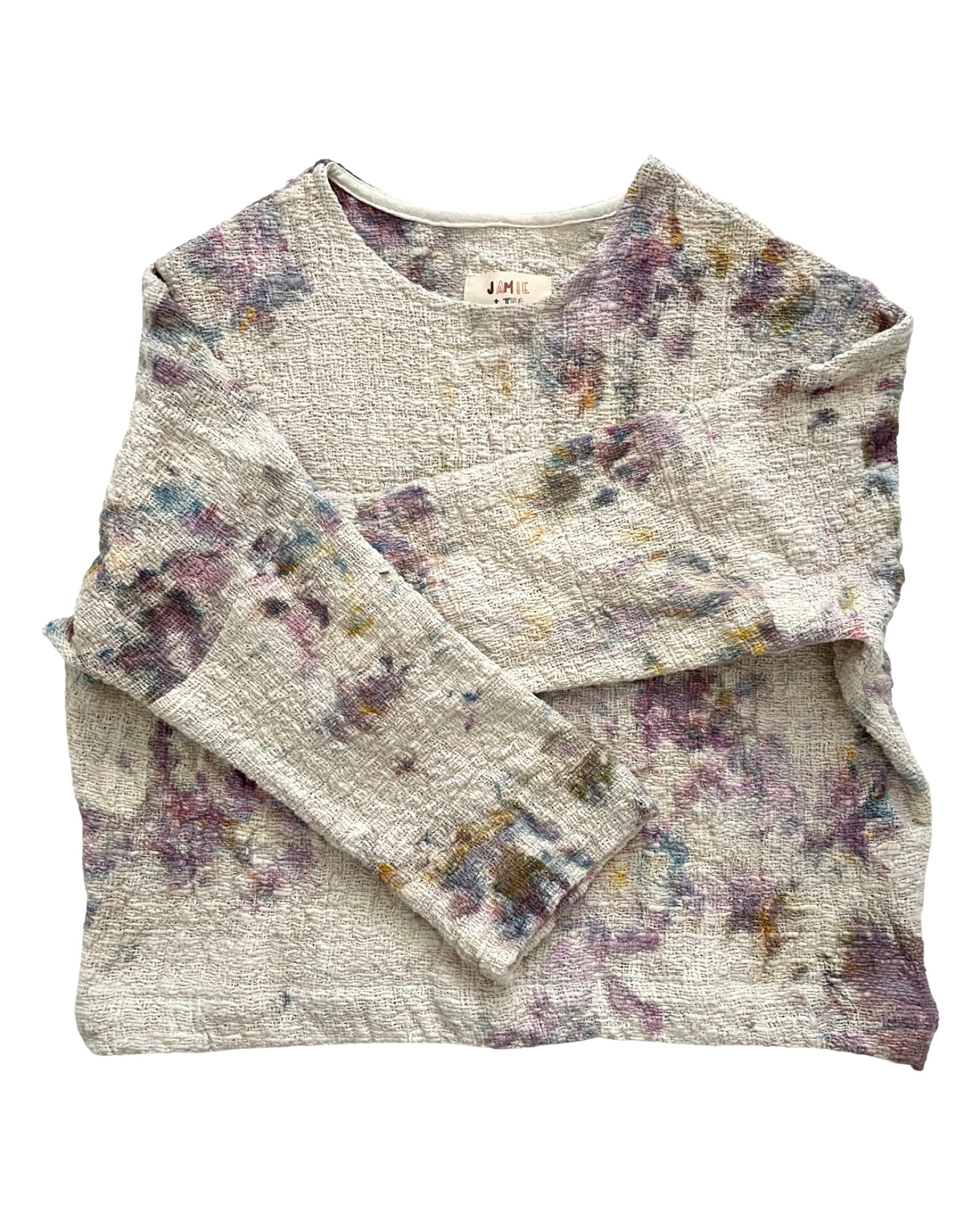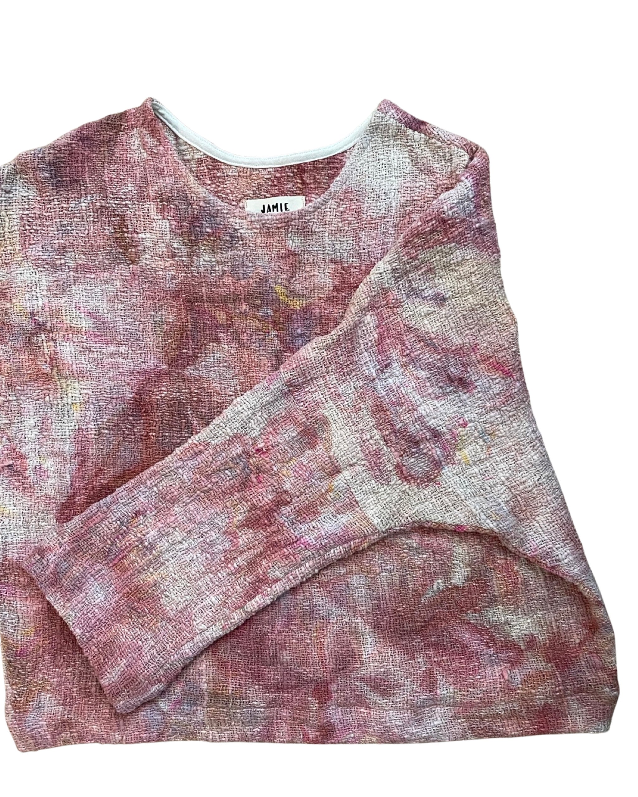 To extend the life of the fibers and deep colors, hand wash in pH neutral soap (think any name brand “free and clear”, mild colorless detergent) and hang to dry. Naturally dyed clothing can also be machine washed in cool water and a gentle detergent. Tumble dry on low. *Avoid bleach, baking soda, and vinegar when washing*