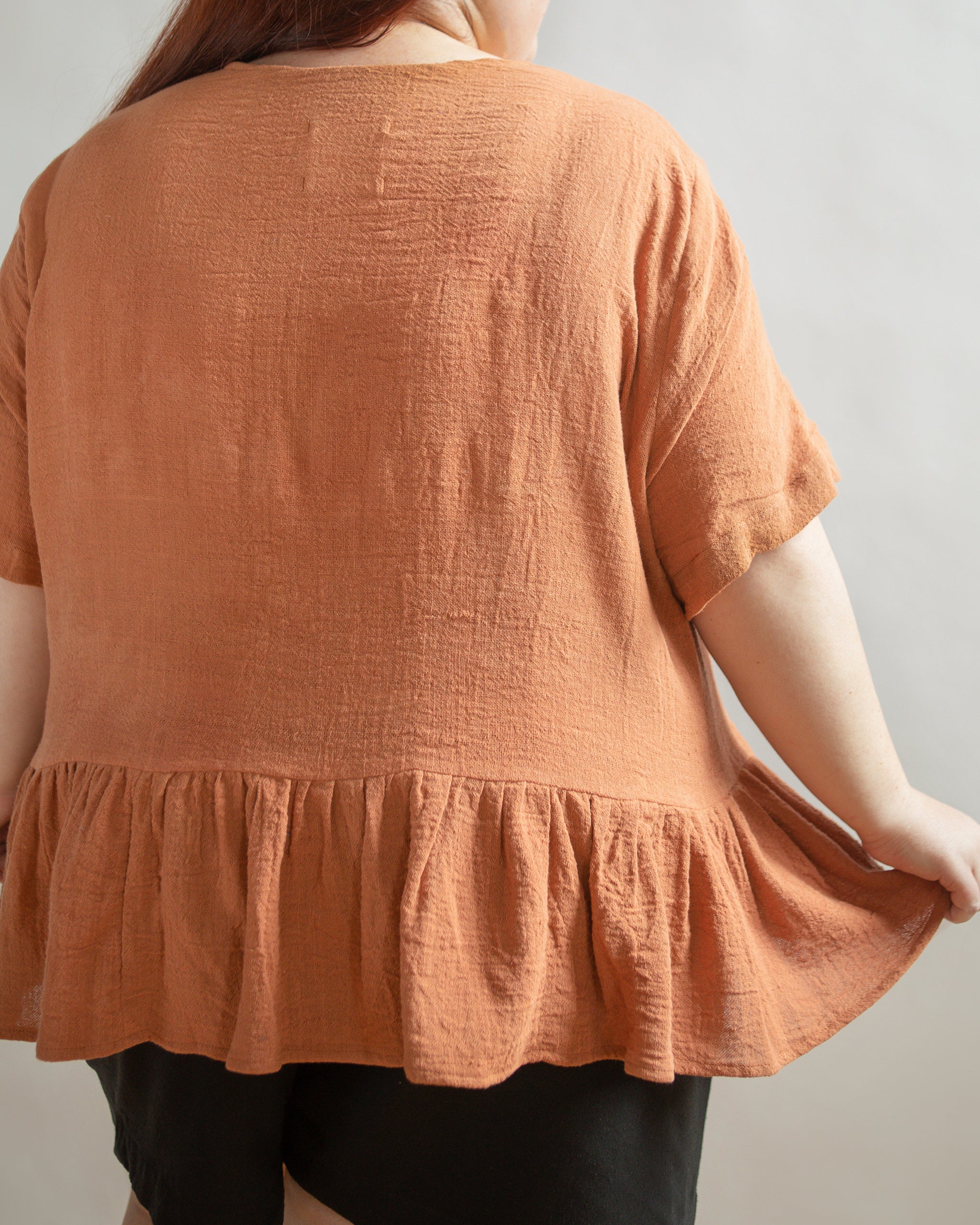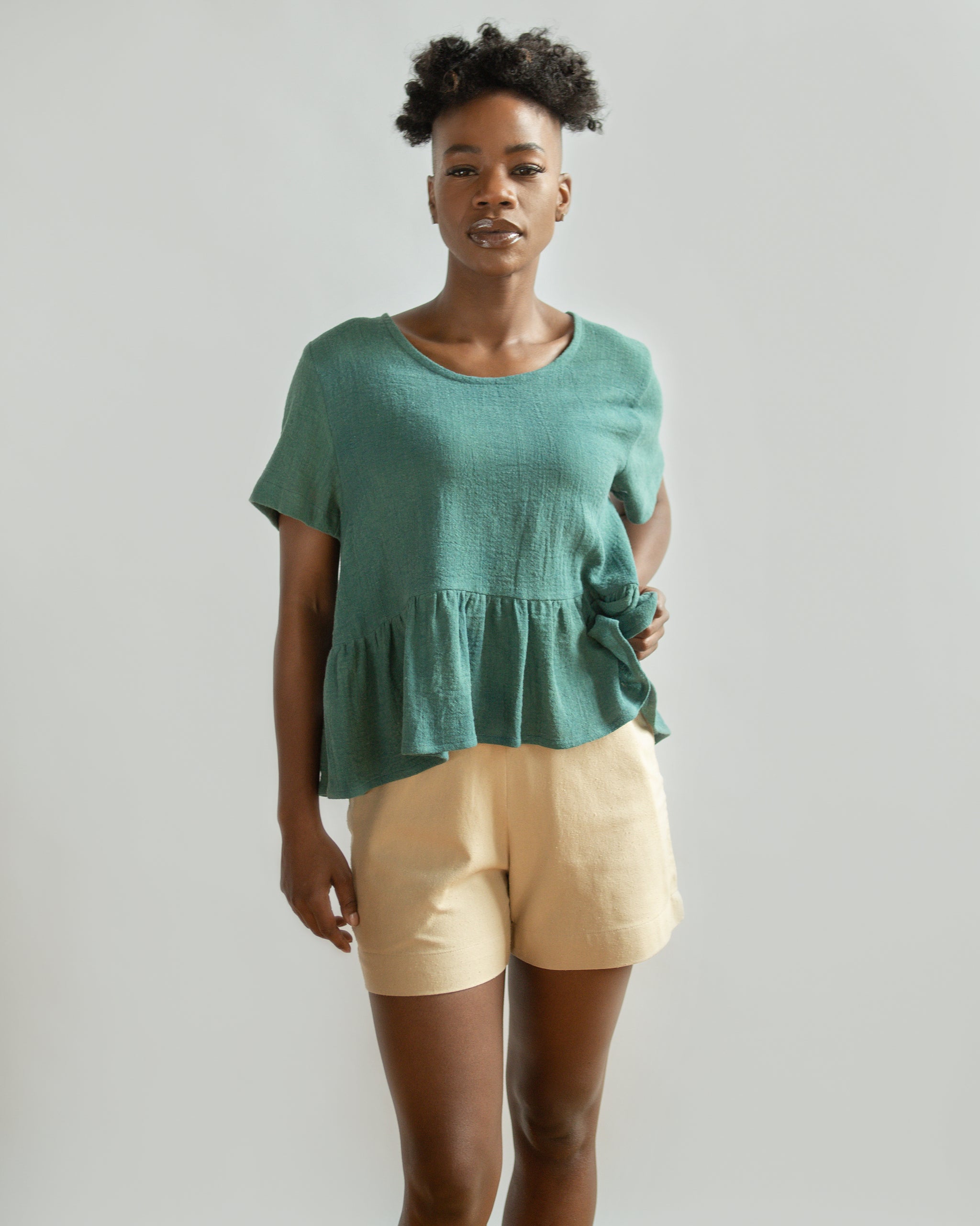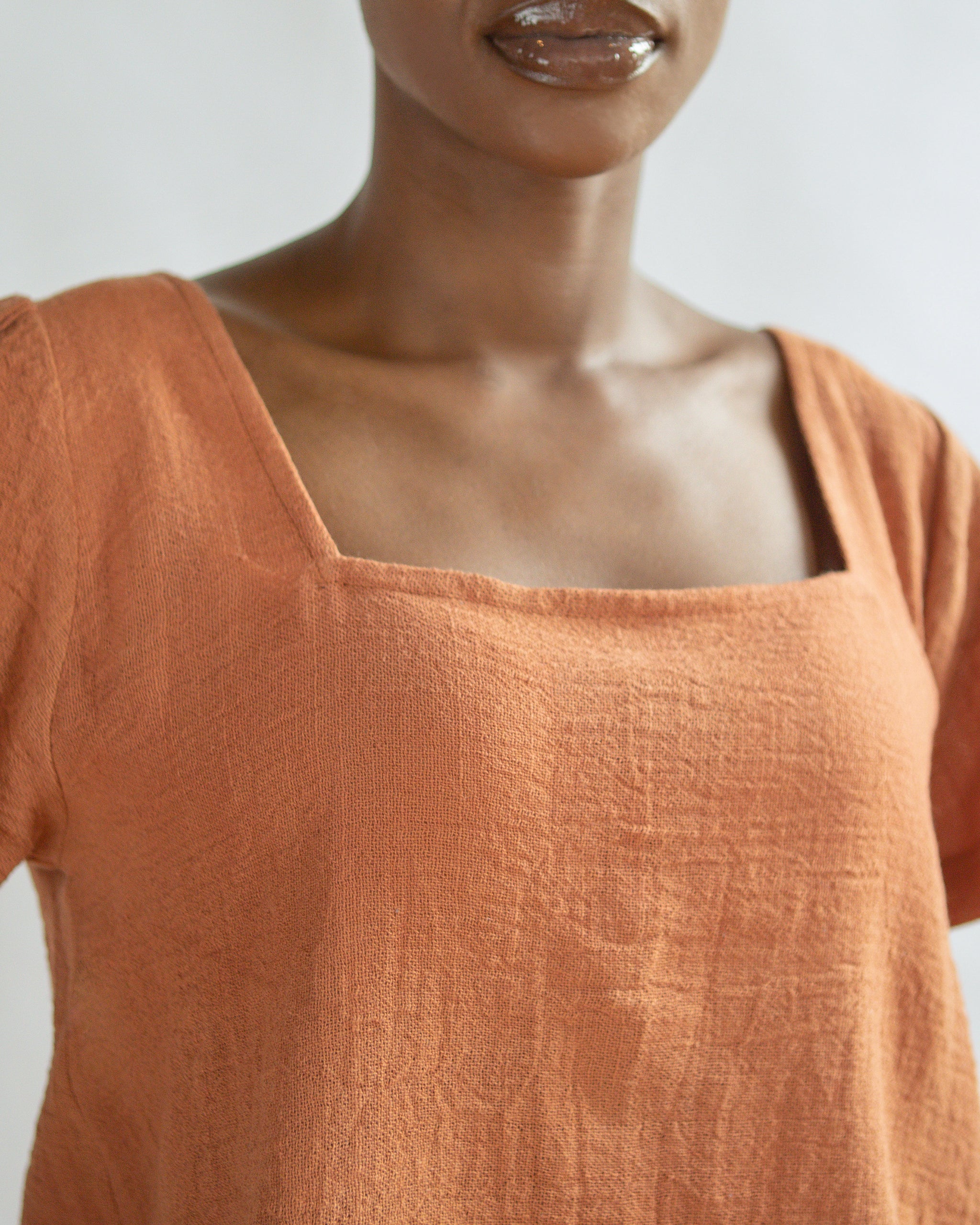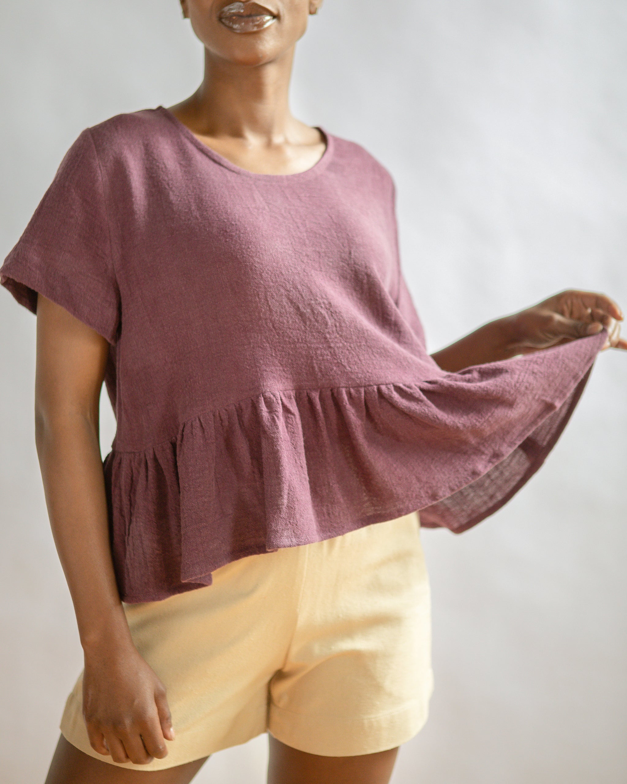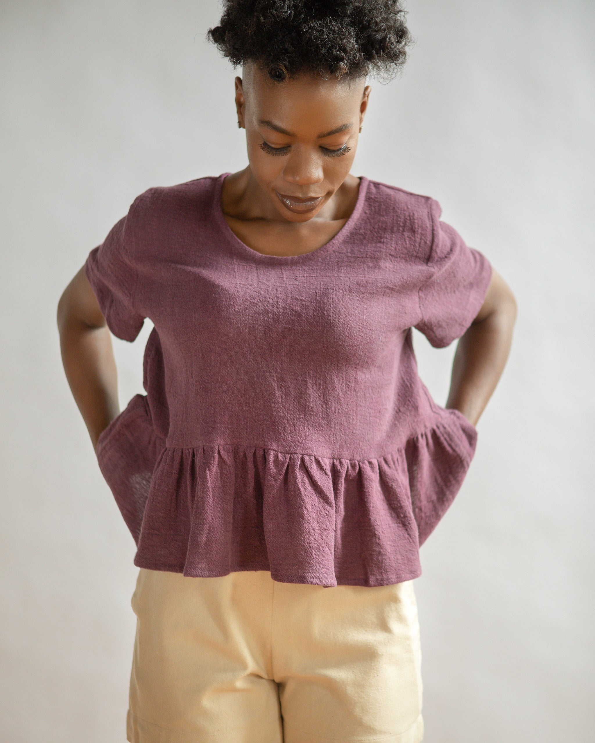 To extend the life of the fibers and deep colors, hand wash in pH neutral soap (think any name brand “free and clear”, mild colorless detergent) and hang to dry. Naturally dyed clothing can also be machine washed in cool water and a gentle detergent. Tumble dry on low. *Avoid bleach, baking soda, and vinegar when washing*