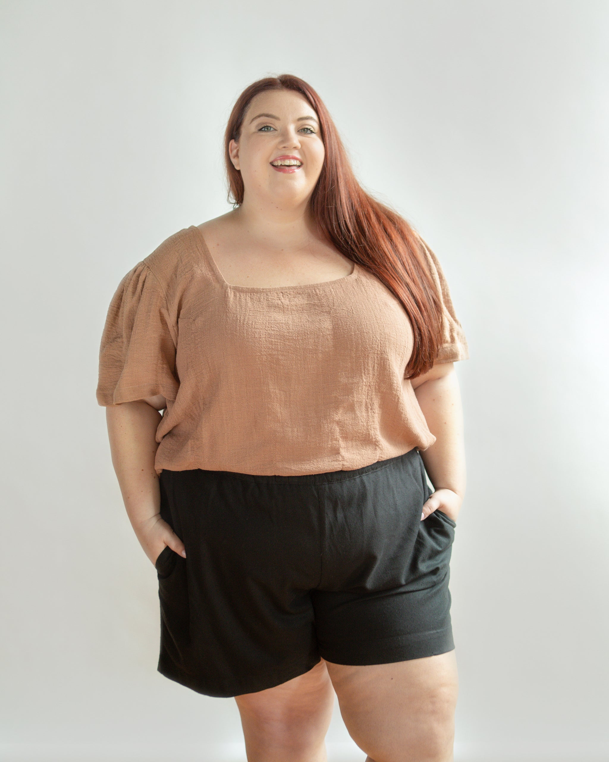 Janice is wearing a size 3XL, Extended Length. She is 6’0” Tall with a 51.5” Bust, 53.5” Waist, and 57” Hip. Her Arm Length measures 28 1/2” and Bicep 19 3/5”.