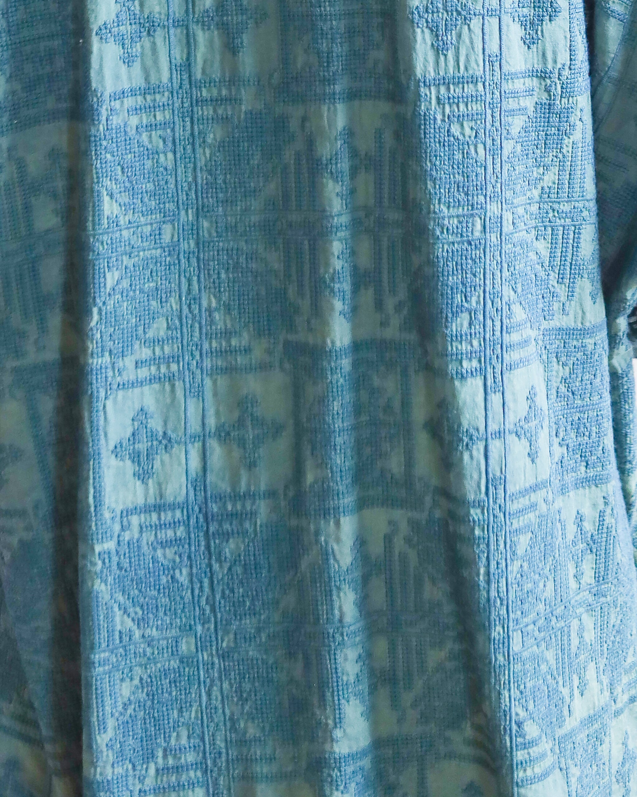 - Cotton thread creates an intricate design on a silk fabric base.